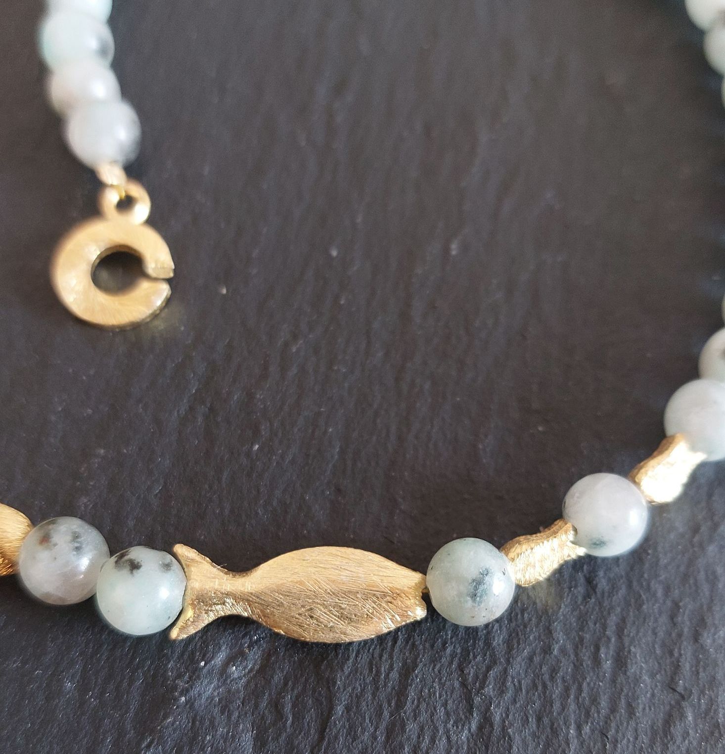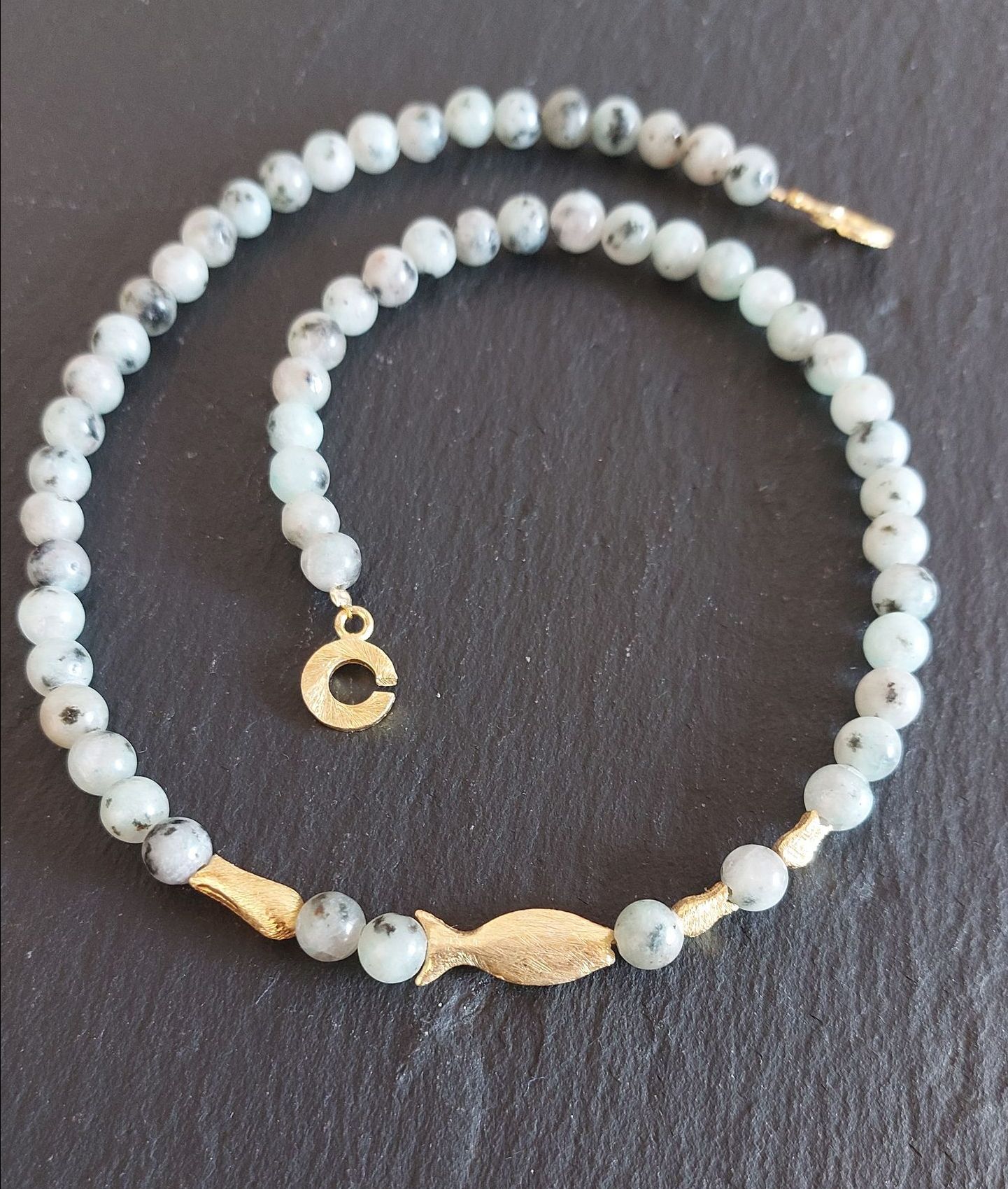 Bildjaspis - Lavastein galvanisiert und vergoldet - Goldkugeln 18k vergoldet -
