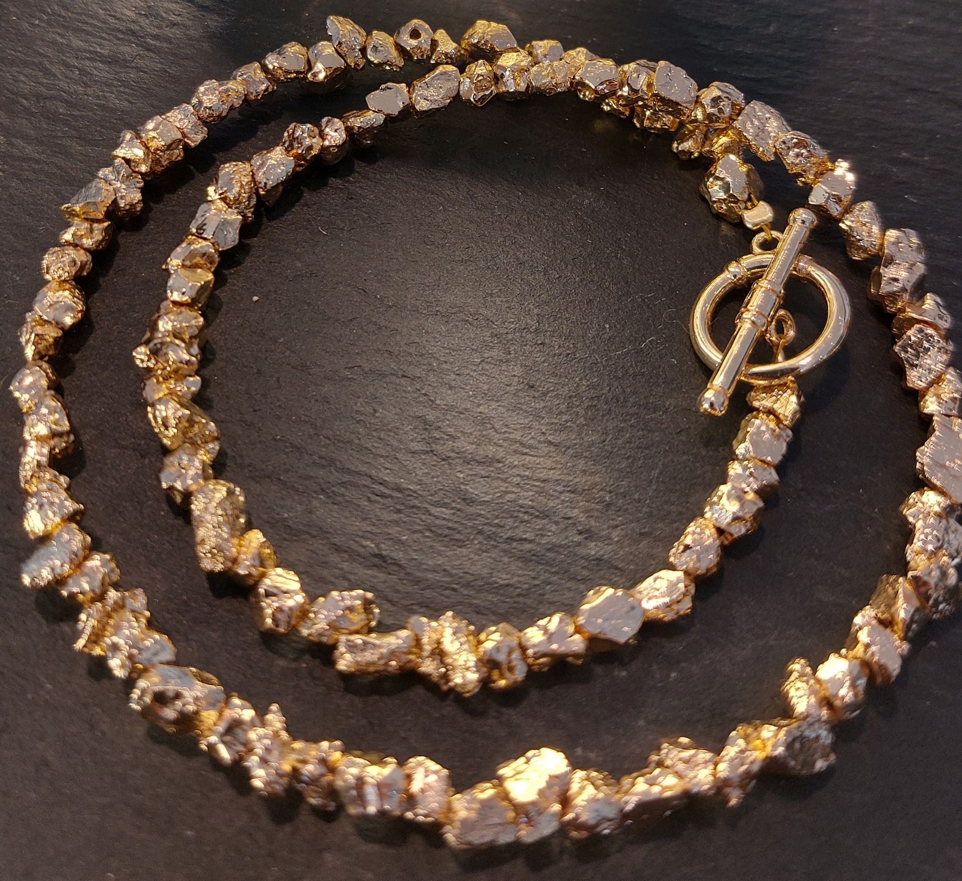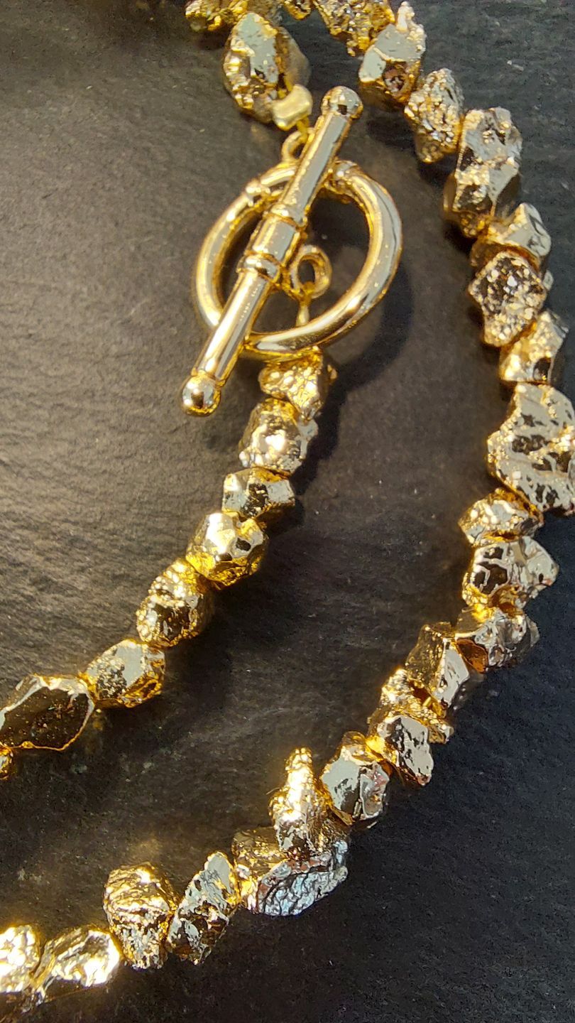 Halskette Pyrit, 18k vergoldet - Knebelverschluss 18k vergoldet
