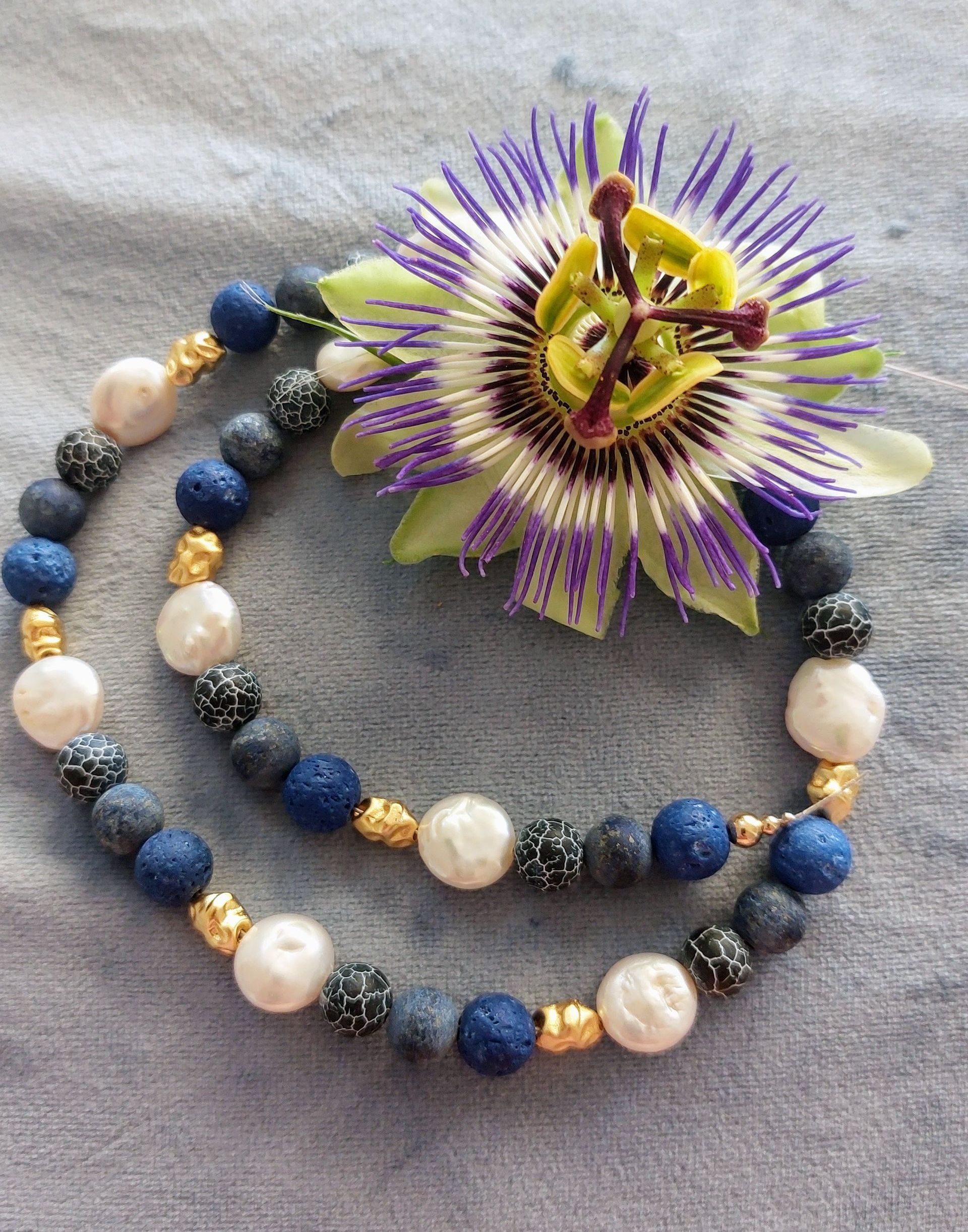 Keshi baroque - Lavaperlen - 925 Silberperlen - Onyx -
