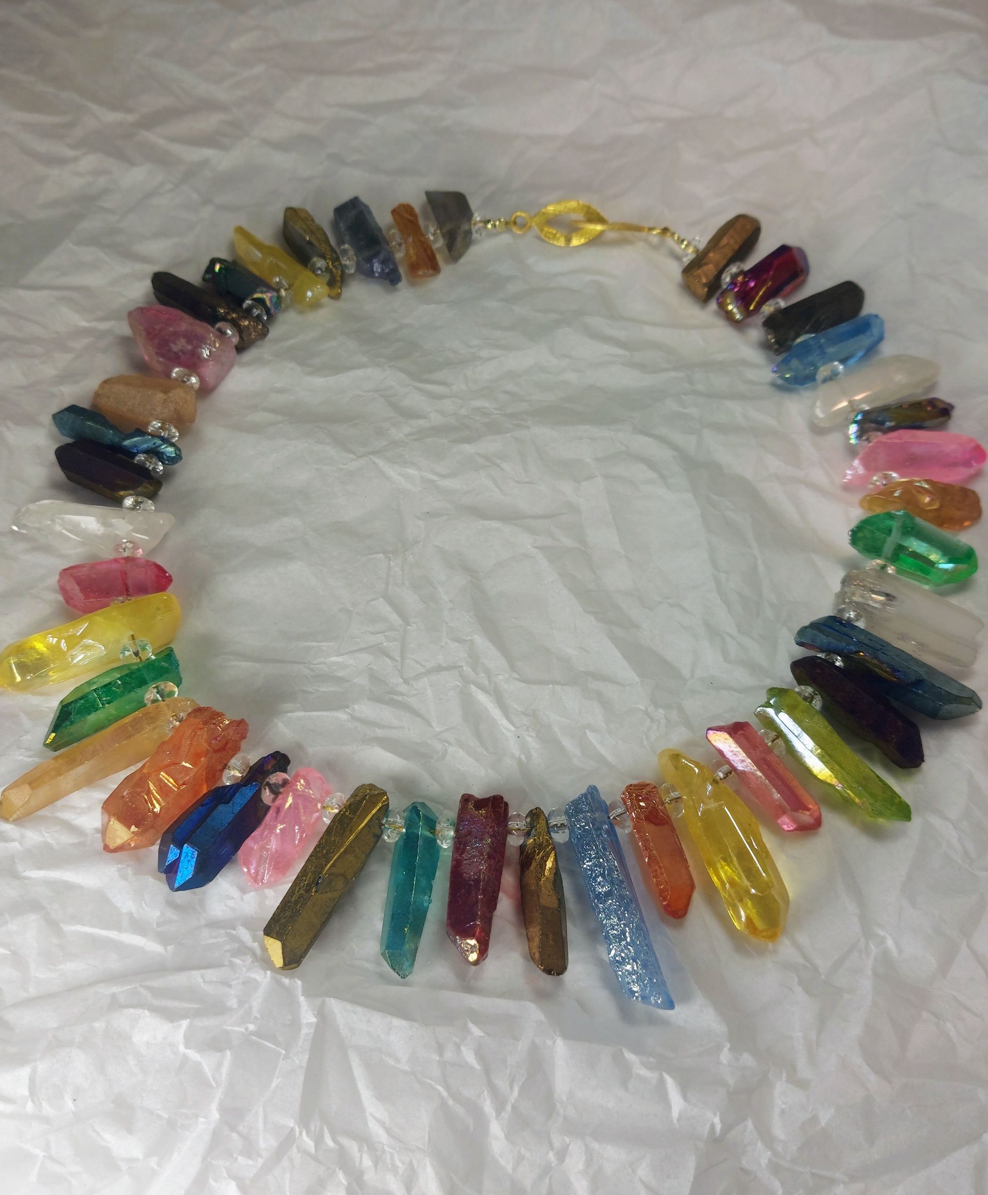 Halskette Bergkristall gefärbt und galvanisiert